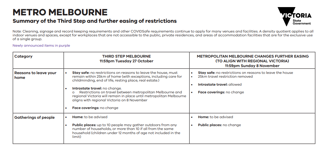 The following information has been provided by victoria's department of health: Jun 09, 2021 · the following changes have been made to the current restrictions in regional victoria. May 26, 2021 · residents are expected to learn today if victoria will announce tighter restrictions or a coronavirus lockdown. State to reopen theatres, bars, increase guests for weddings, funerals. There are no restrictions on the reasons to leave home but staying covidsafe remains important.